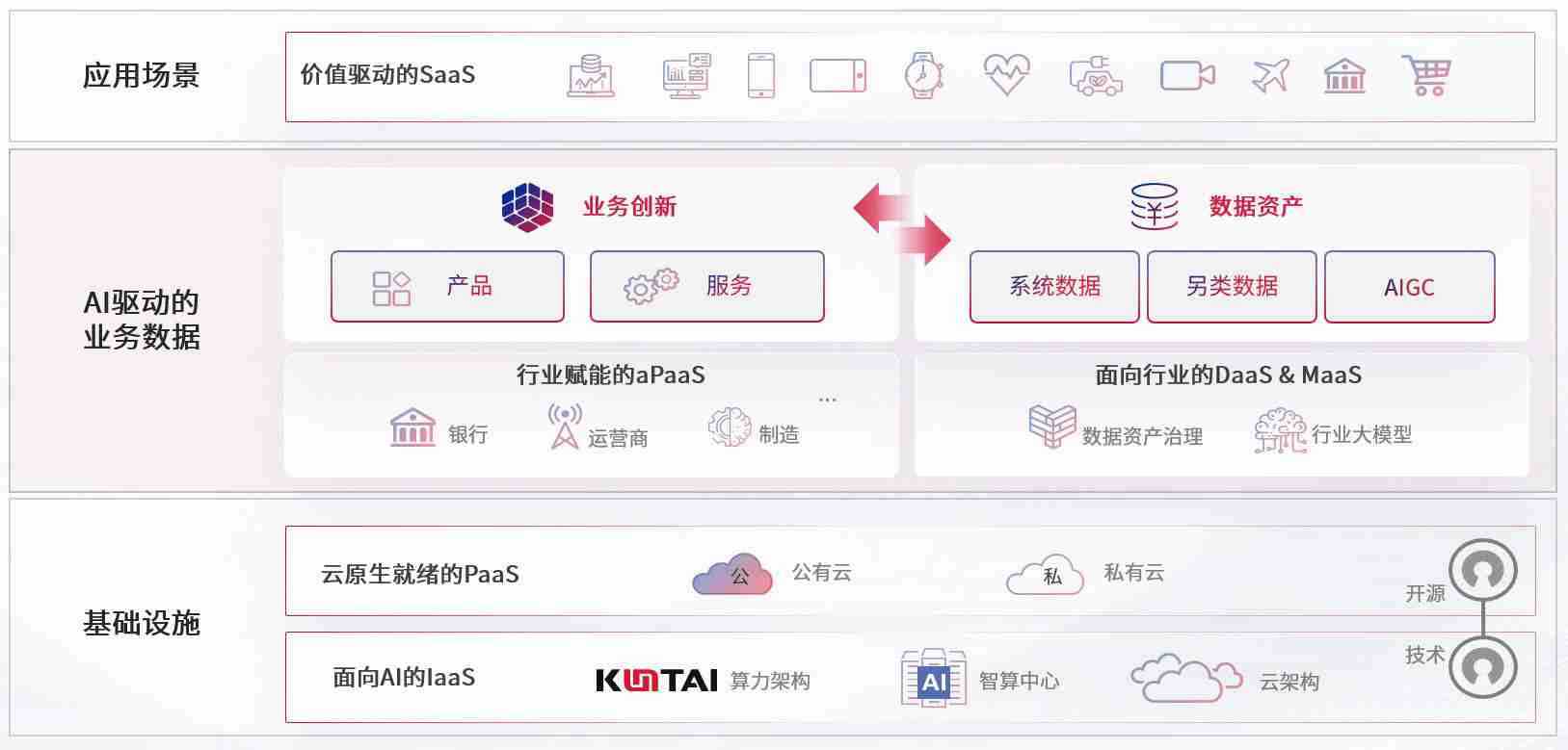 数字时代,,,围绕企业数字化转型的关键要素,,,J9.COM数码开创性的提出数云融合战略和技术体系框架,,着力在云原生、、、、数字原生、、AI原生和信创产业上架构产品和服务能力,,为处在不同数字化转型阶段的快消零售、、、汽车、、、、金融、、、医疗、、政企、、、、教育、、、、运营商等行业客户提供泛在的敏捷IT能力和融合的数据驱动能力,,构建跨界融合创新的数字业务场景和新业务模式,,,,助力企业级客户建立面向未来的核心能力和竞争优势,,全面推动社会的数字化、、、、智能化转型升级。。