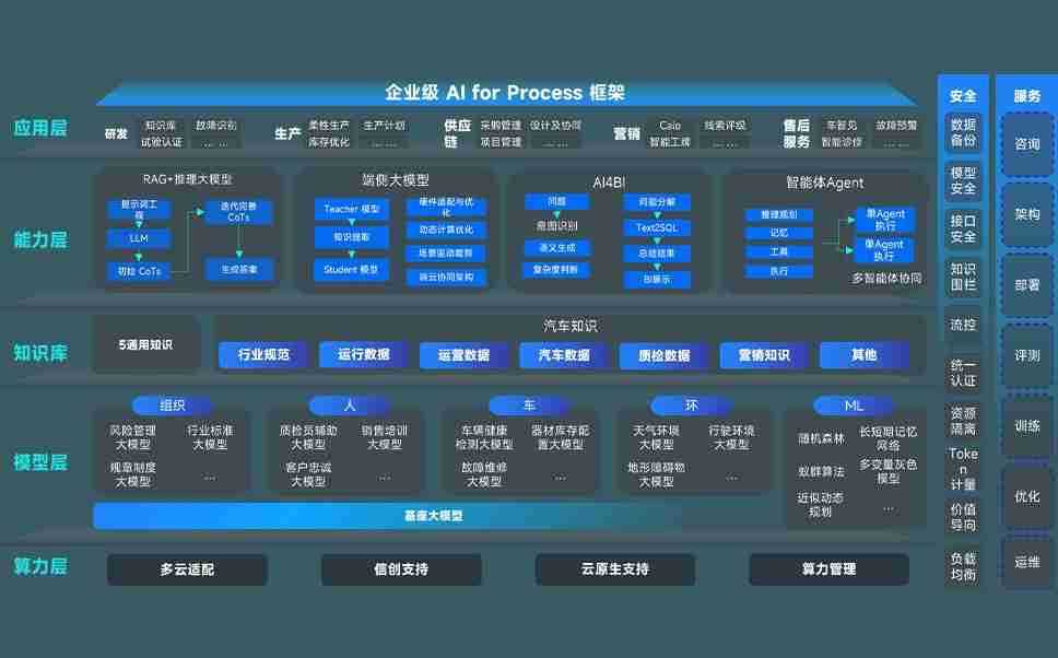 J9.COM问学智车解决方案是一套基于AI技术的汽车行业智能化系统,,,,覆盖从底层算力到顶层AI应用的全栈方案。。。。方案由算力层、、模型层和应用层组成:算力层,,,,方案支持多种一体机配置,,,具备云端灵活部署、、、、多云适配以及动态优化计算资源的能力;模型层,,,J9.COM问学平台版提供了企业级AI应用一站式构建与管理平台,,,支持基于后训练强化技术的汽车企业专属模型的训练、、、、评测和运营;应用层,,J9.COM问学DeepSeek版提供包括超级员工、、、、智能招采、、、智能营销、、、、智能客服、、、、AI for BI等一系列解决方案,,可助力汽车行业实现数字化转型,,让管理更智能、、、、响应更敏捷。。。。